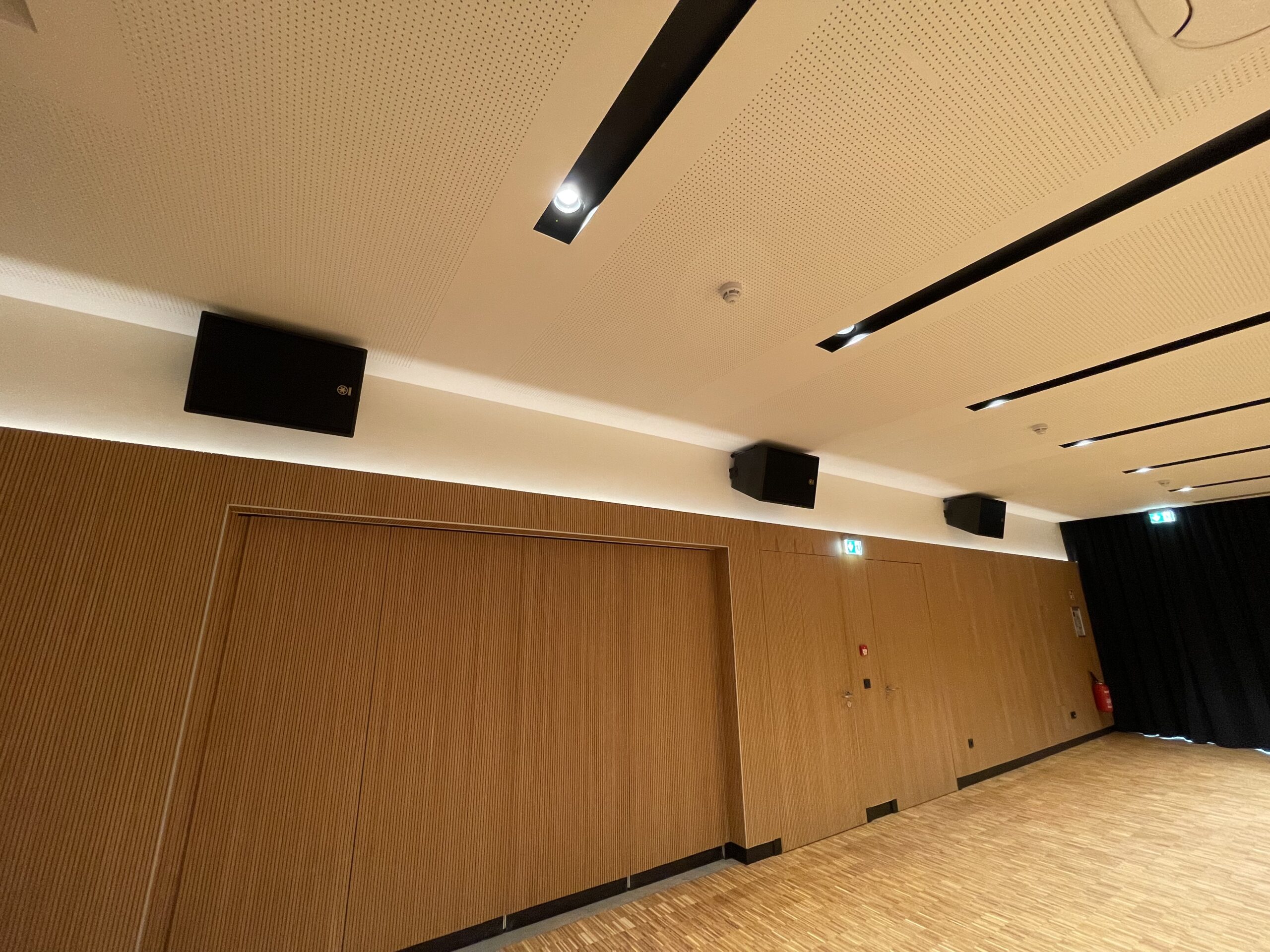 – Ronderëm d’Contourë vun eisem Sall ass eng professionell Soundanlag installéiert.
