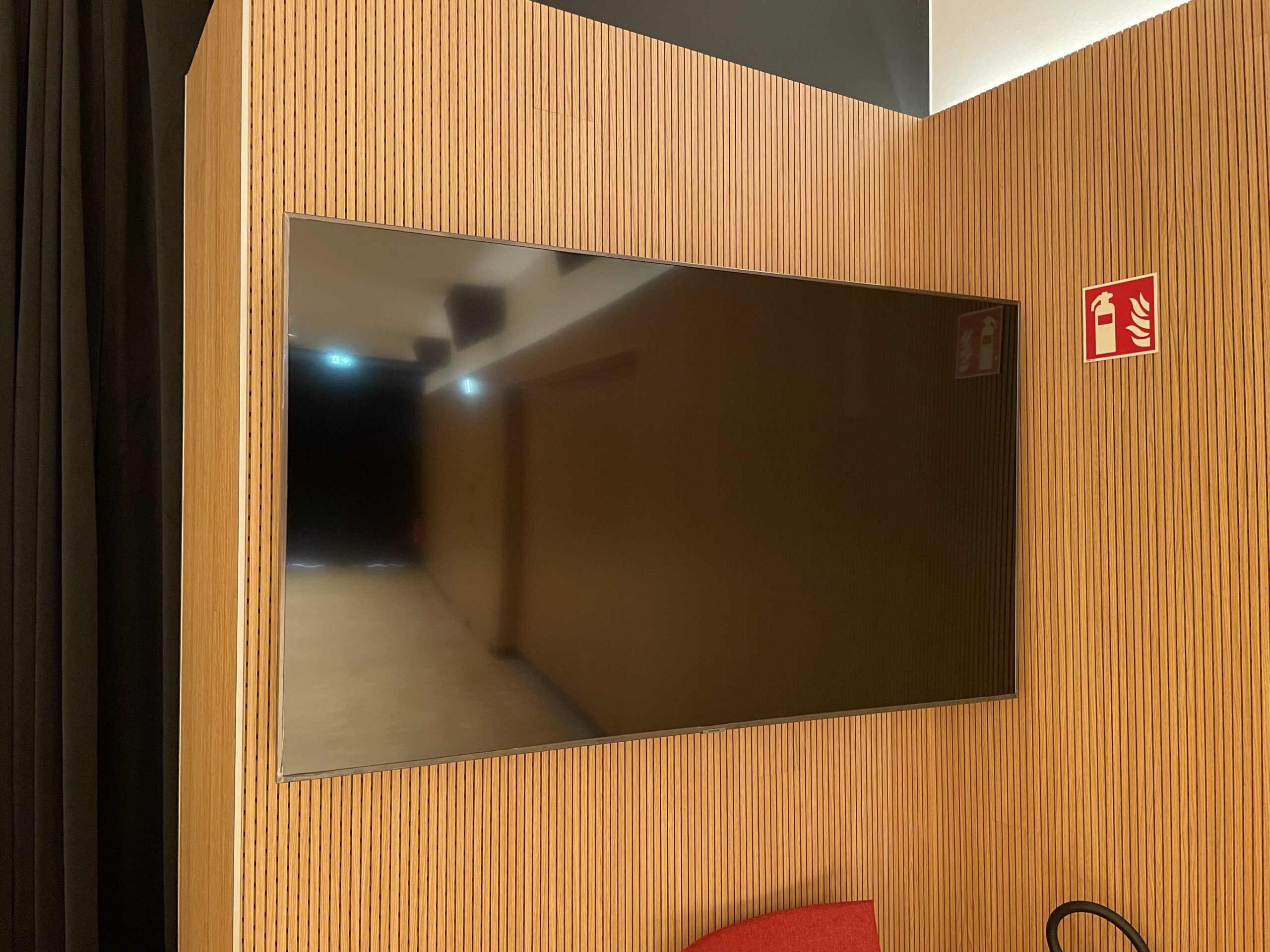 – Virun der Bühn hänken 2 x 65″ grouss LED Fernseher, mat HDMI an USB Uschloss.
